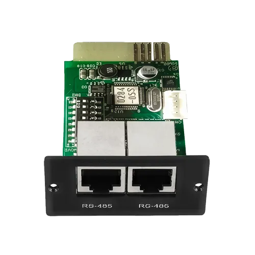 A placa Modbus permite uma comunicação fiável entre sistemas UPS ou inversores fotovoltaicos e computadores e sistemas de supervisão utilizando o protocolo Modbus RTU padrão. É ideal para ambientes industriais e instalações que requerem monitorização e controlo central.